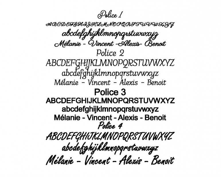 Pour toute autre phrase ou mot, il faut le préciser clairement dans le champ de personnalisation le mot et sa police de caractère.