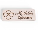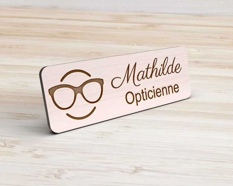 Badge opticien en bois personnalisé, Opticien, Optométriste, Ophtalmologiste, Orthoptiste, Lunetier, Technicien en optique, Chercheur en optique, Ingénieur optique, Vendeur en optique, monteur-vendeur.