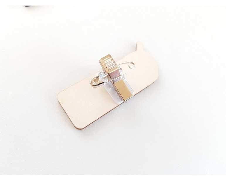 - Système d'attache : Au choix - aimant ou pince avec épingle à nourrice