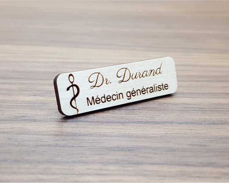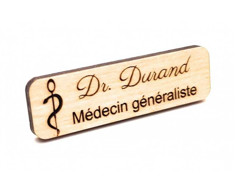 Badge médical caducée petit modèle personnalisé bois médecin, interne en médecine, cardiologue, infirmière, docteur, médecin généraliste, soignant.