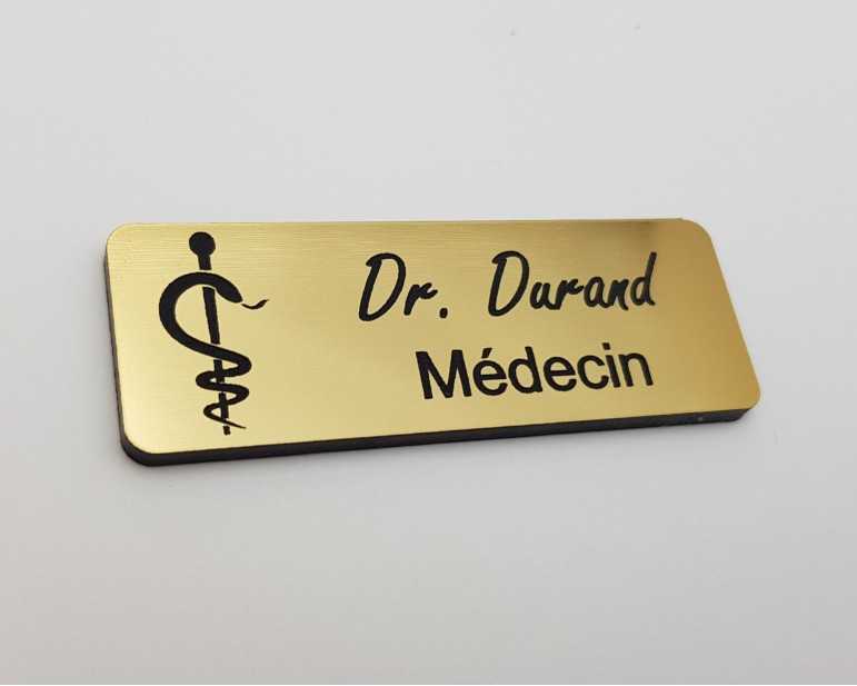 Badge médical personnalisé or brossé acrylique