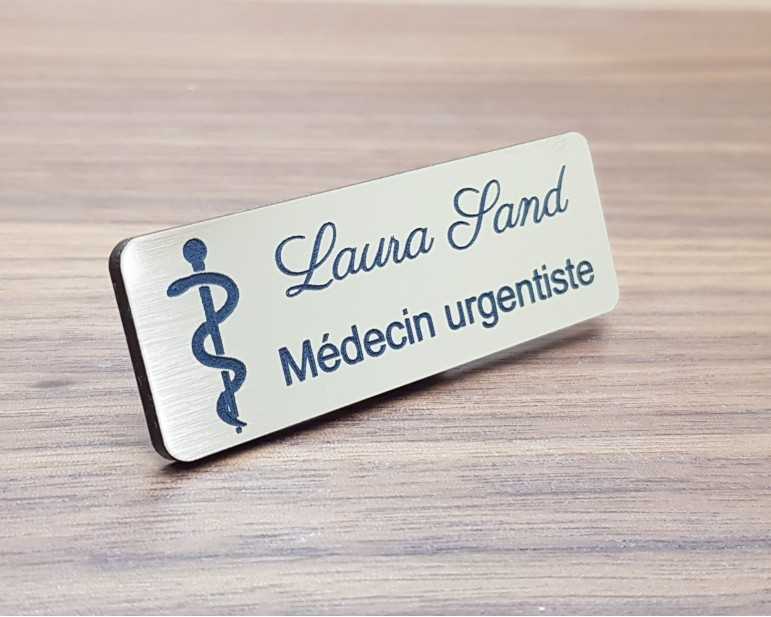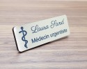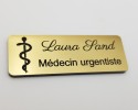 Badge médical caducée personnalisé or brossé acrylique médecin, interne en médecine, cardiologue, infirmière, docteur, médecin généraliste, soignant.