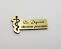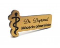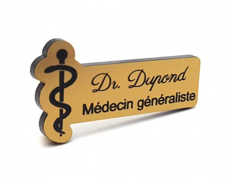 Badge médical caducée petit modèle personnalisé or brossé acrylique médecin, interne en médecine, cardiologue, infirmière, docteur, médecin généraliste, soignant.