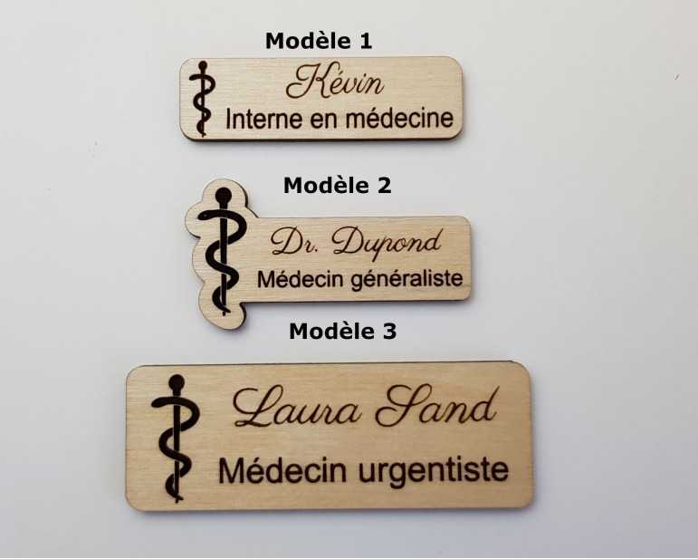Badges médicaux personnalisés en bois - 3 modèles au choix
