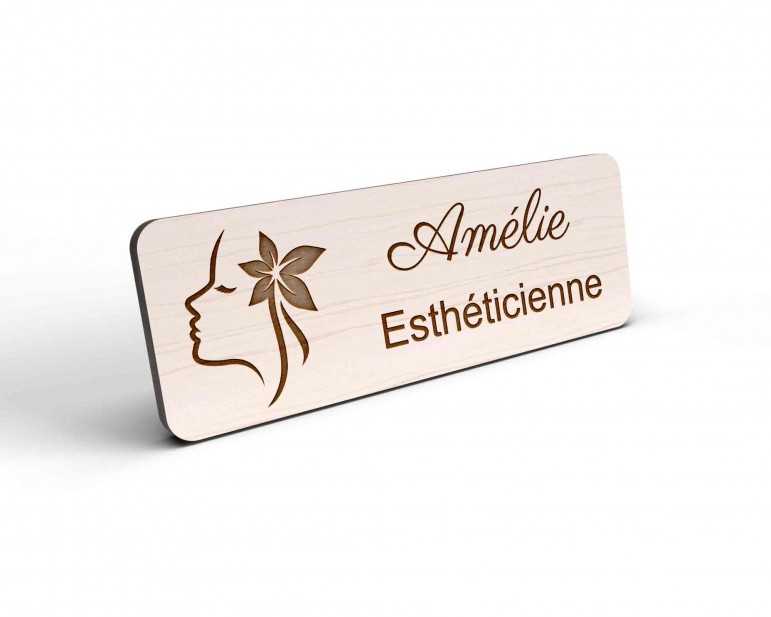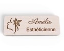 Badge en bois personnalisé esthéticienne conseillère beauté