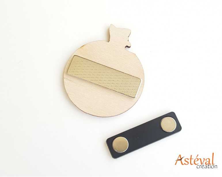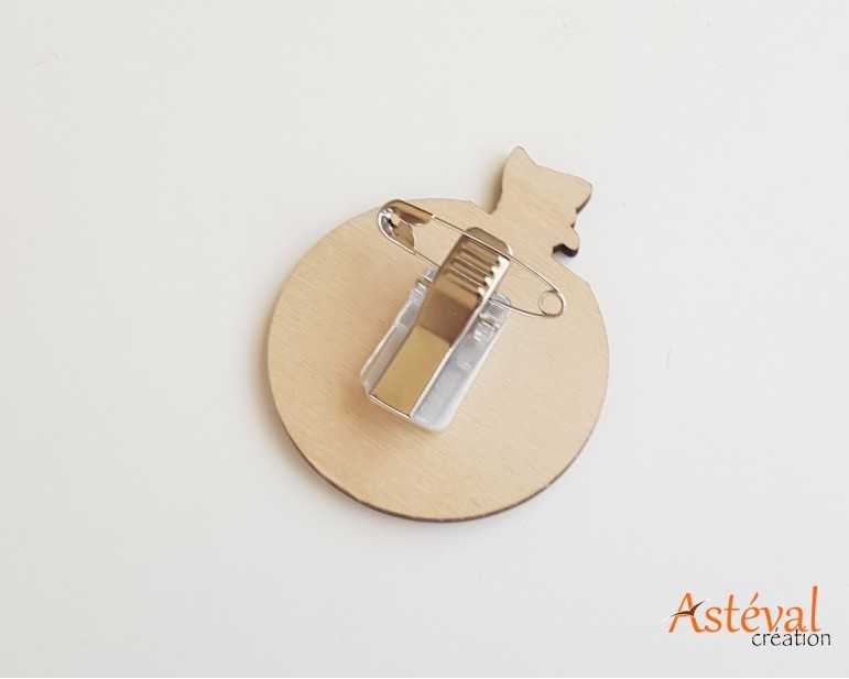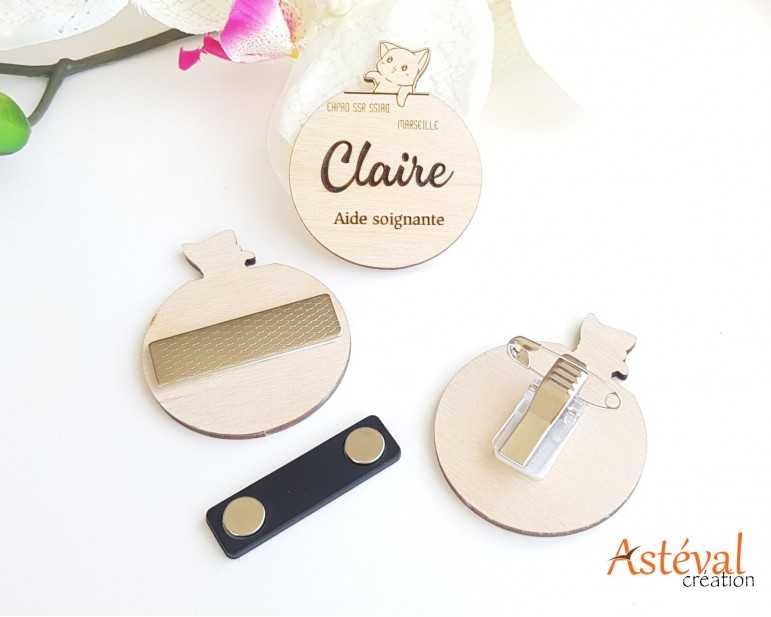 Badge en bois personnalisé chat funny Animateur animation
