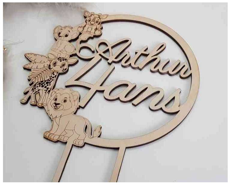 Cake topper personnalisé enfant, lion, girafe, jungle