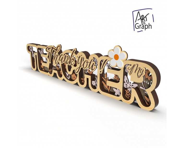 Décoration cadeau maitresse TEACHER Fichier numérique pour découpe laser
