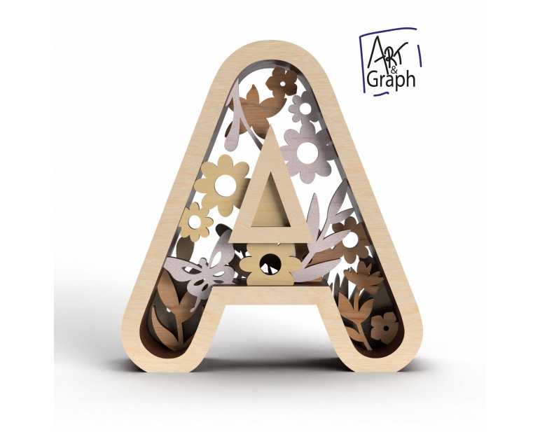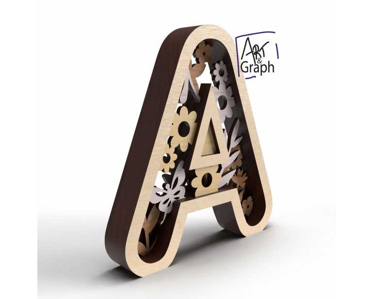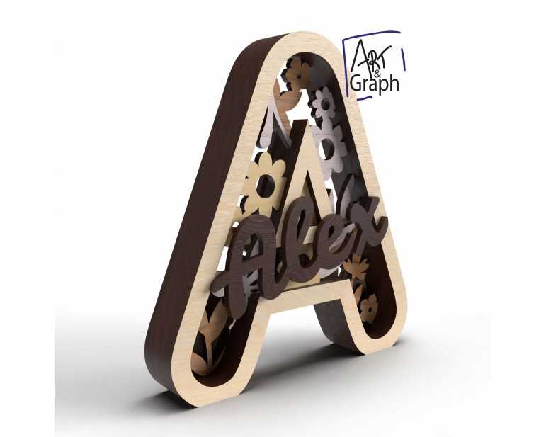 Lettre A decoration 3D Fichier Numérique pour Découpe Laser