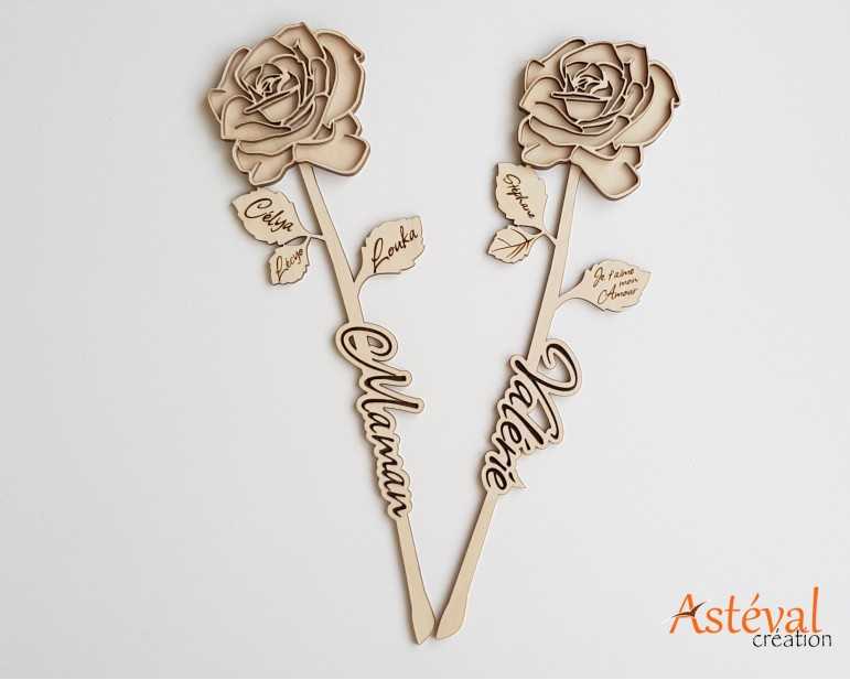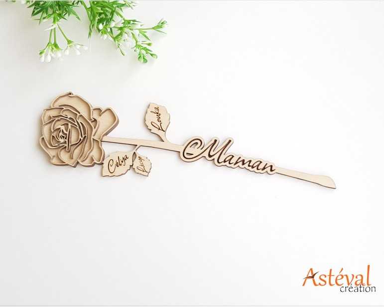 Cette rose en bois personnalisé est parfaite pour une belle surprise et une décoration originale à offrir à votre maman, mamie, pour les maitresses, la nounou de votre enfants pour un cadeaux de fin d'année et également pour votre demande de parrain marraine ou annonce de grossesse.