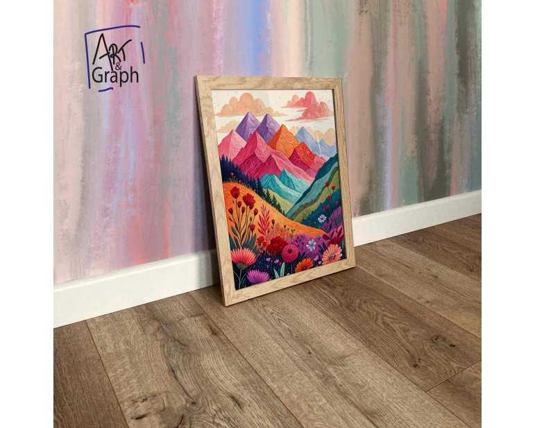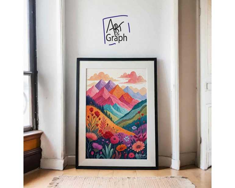 Affiche Numérique Paysage de Montagnes et Fleurs