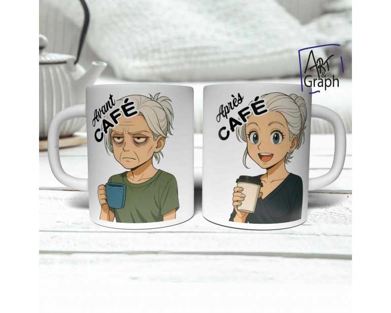 Illustration Digital Sublimation mug tasse humour femme cheveux blanc