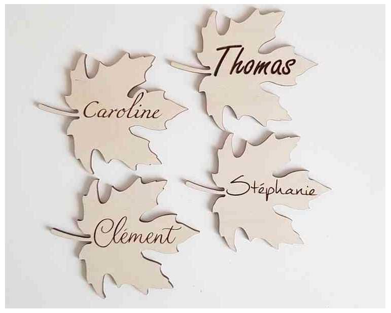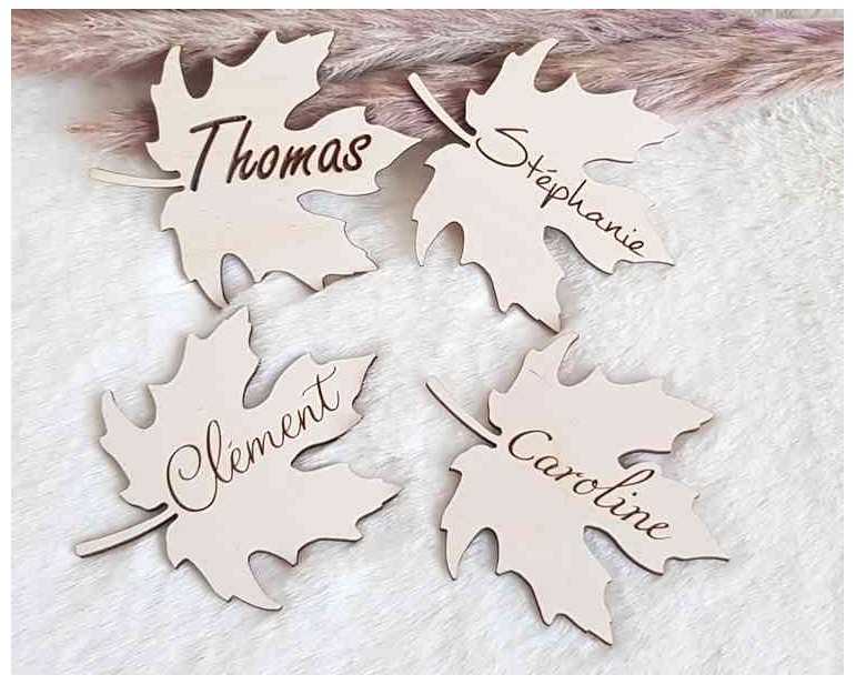 Marque place bois personnalisé feuille érable, Mariage, Baptême ou Anniversaire - Décoration de table