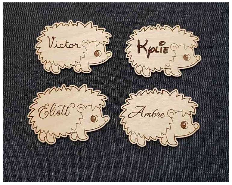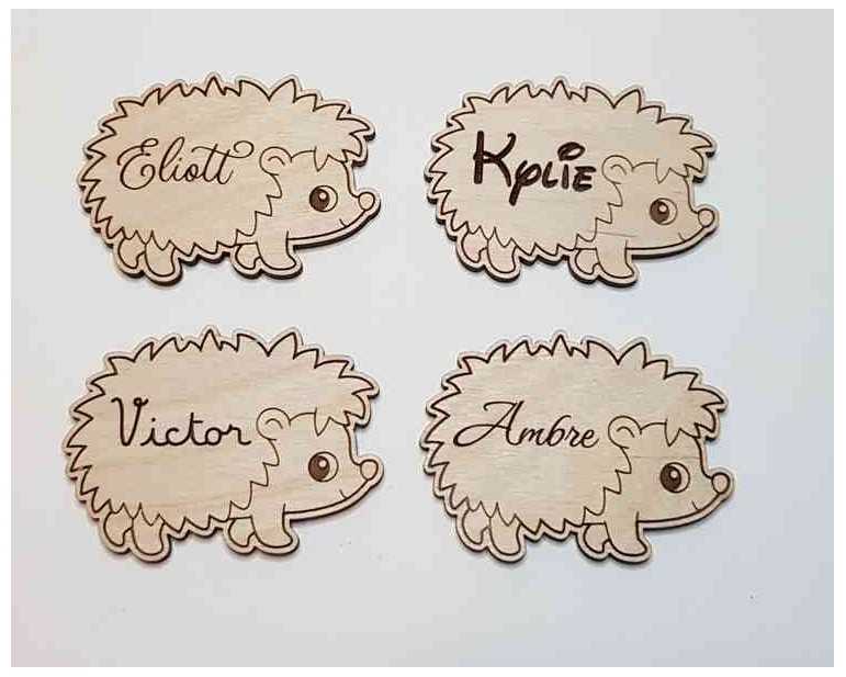 Personnalisez votre décoration de table avec ces marque-places hérisson en bois, pour votre mariage, Anniversaire, Baptême, sur le thème forêt, avec le prénom gravé dessus ou autre selon votre imagination.
