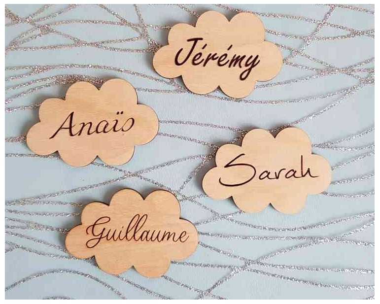 Marque place bois personnalisé nuage