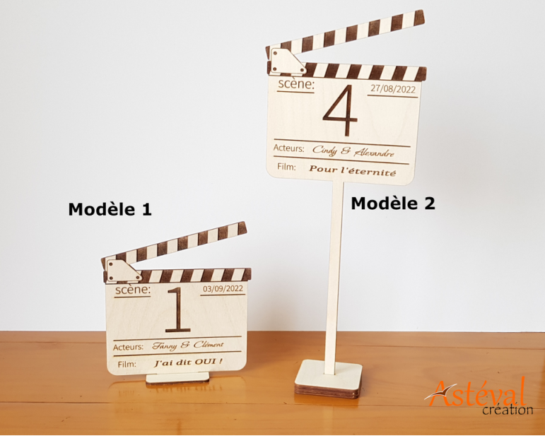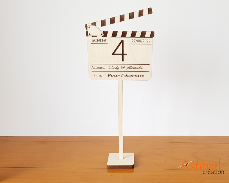 Clap Numéros de table de mariage personnalisés thème cinéma