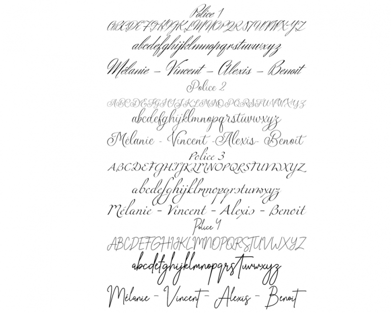 - Précisez la police de caractère que vous désirez, vous avez le choix entre 4 polices (voir photo) si vous ne la précisez pas nous utiliserons la police du modèle géométrique choisi.