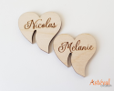 Marque verre, marque place bois personnalisé cœur - Mariage, Baptême, ou Anniversaire - Décoration de table