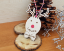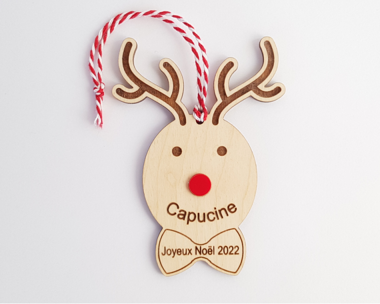 Boule de Noël cerf personnalisée - bois nez rouge acrylique prénom joyeux noêl mon premier noêl joyeux noêl