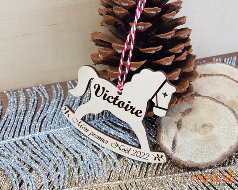 Boule de Noël cheval à bascule en bois personnalisé