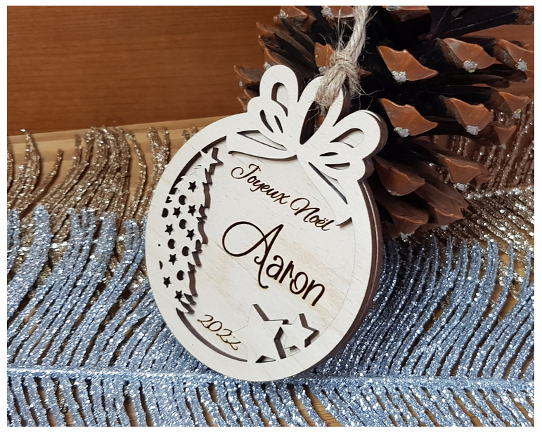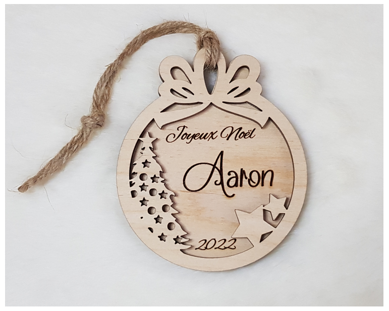 Faites vous plaisir avec cette jolie boule de noël en bois personnalisé pour votre sapin. Un cadeau original pour les fêtes