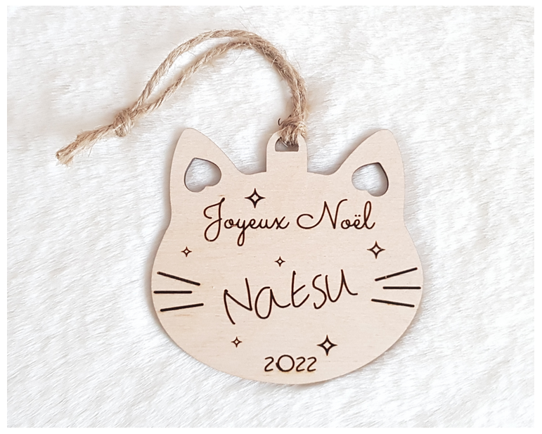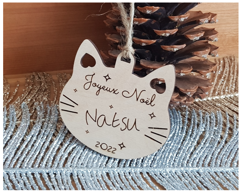 Boule de Noël chat personnalisée en bois joyeux noël chaton