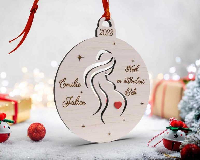 Faites plaisir en offrant une boule de noël en bois personnalisé pour le sapin de noël.
