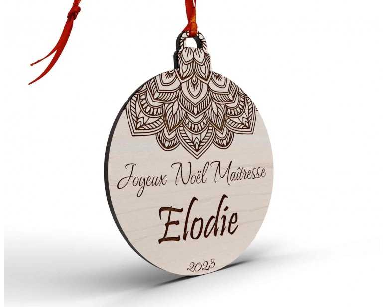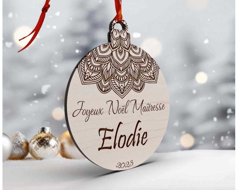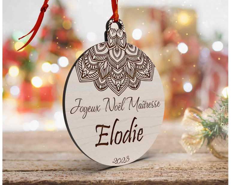 Boule de Noël personnalisée joyeux noël mandala, maîtresse, maître, atsem, nounou