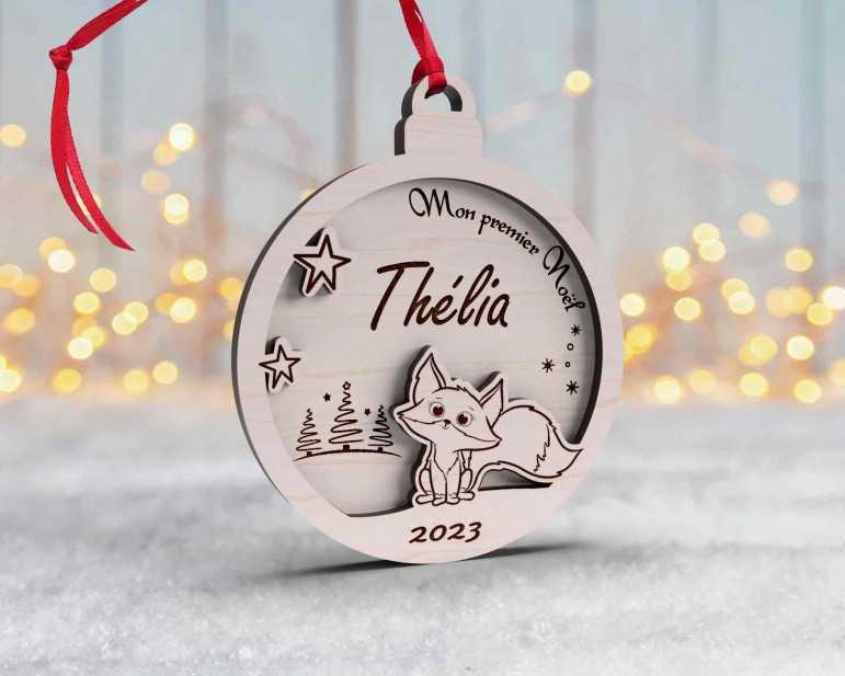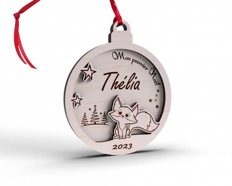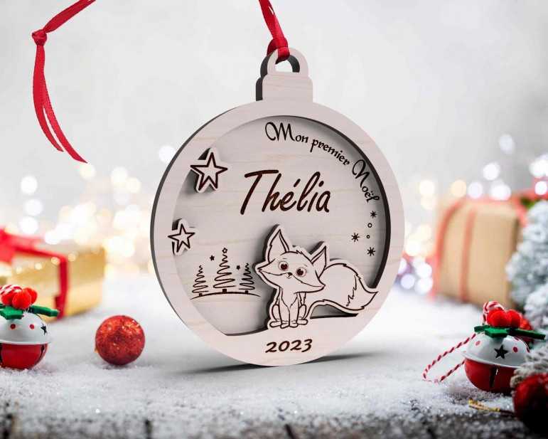 Boule de Noël personnalisée en bois décor renard