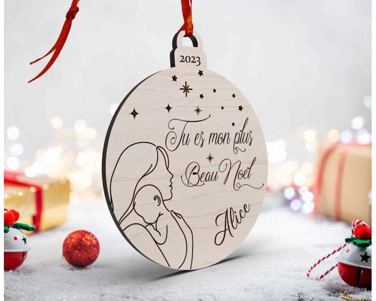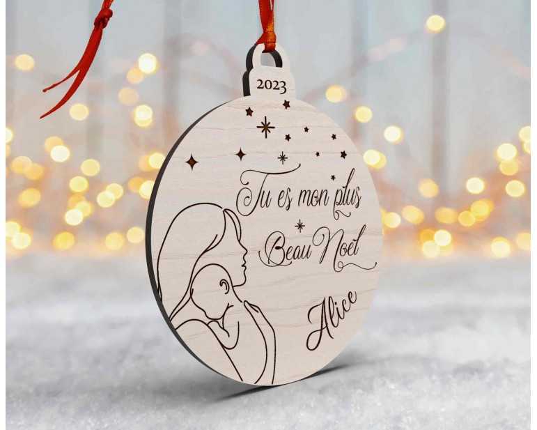 Boule de Noël personnalisée en bois maman premier noël naissance