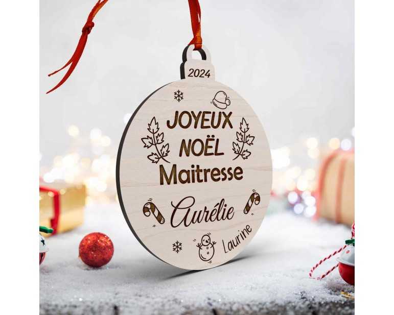 Boule de Noël en bois personnalisée maîtresse, maître, atsem, nounou