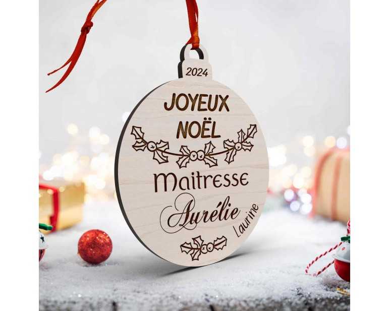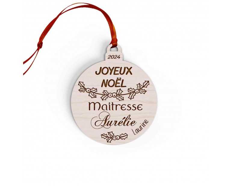 Boule de Noël en bois personnalisée maîtresse, maître, atsem, nounou Houx