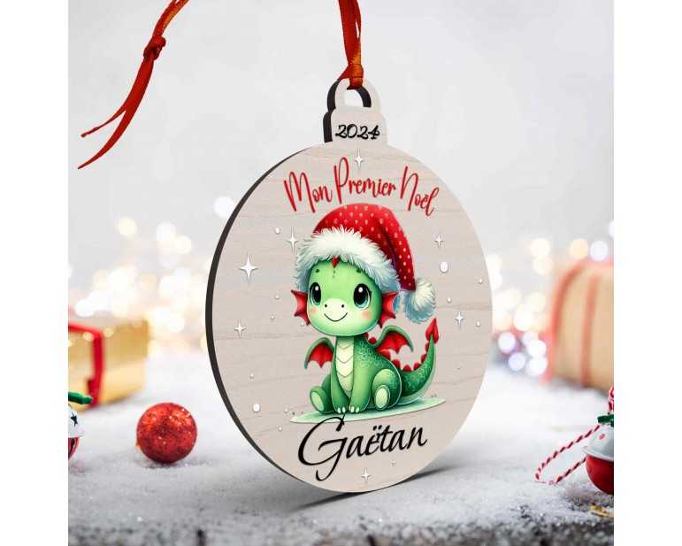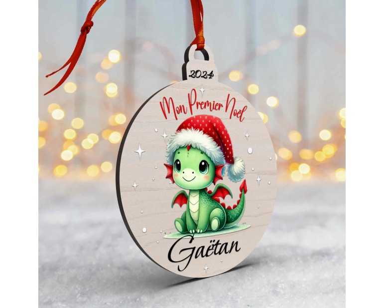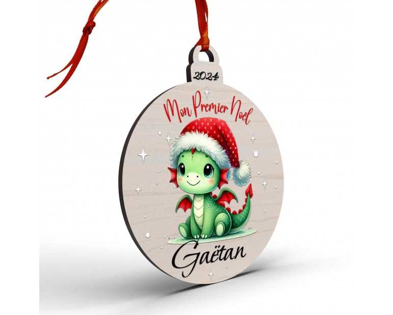 Boule de Noël en Bois Personnalisée avec dragon colorée Mon Premier Noël