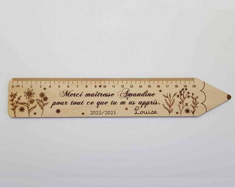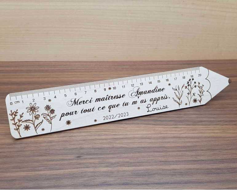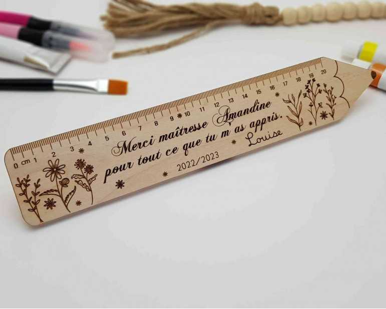 Règle crayon personnalisée bois remerciement fin d'année scolaire - maîtresse - nounou- atsem