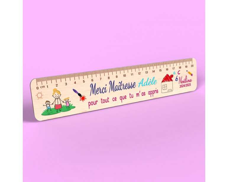 Exprimez votre gratitude avec une règle en bois personnalisée. Un cadeau parfait pour la fin d’année scolaire, une fête ou simplement pour dire "Merci" avec une touche personnelle.