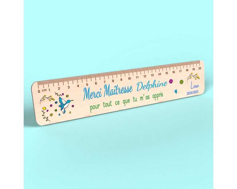 Exprimez votre gratitude avec une règle en bois personnalisée. Un cadeau parfait pour la fin d’année scolaire, une fête ou simplement pour dire "Merci" avec une touche personnelle.