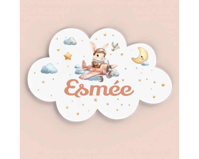 Plaque décorative Personnalisable intérieur extérieur thème nuage lapin avion
