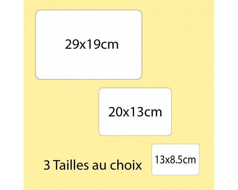 ✔ Petit : 13 cm x 8,5 cm – Épaisseur 3 mm